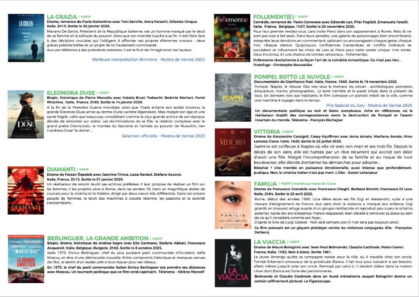 de faire connaître la culture italienne sous toutes ses formes, de promouvoir les échanges franco-italiens, de soutenir d’encourager tous les efforts et initiatives allant dans ce sens.